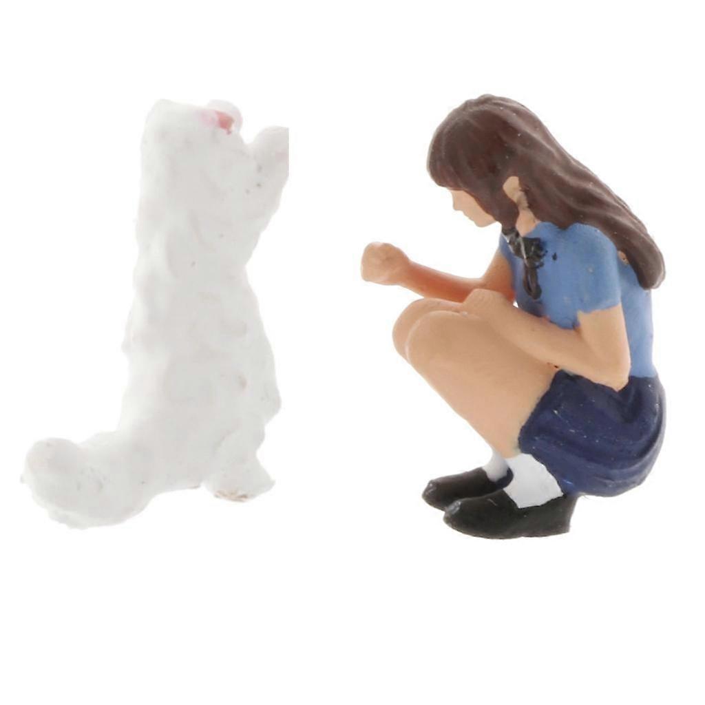 2-pack 1:64 Resin Figures Girl Play with Cat Street Railway Layout S Gauge