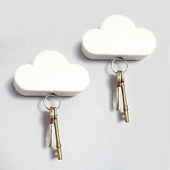 2 Pack Adhesive Key Hanger Organizer Magnetic Key Holders White Cloud Key Ring Keychains Hooks Racks 4 Strong Magnets Decorative Wdi Man Jiaall Mount