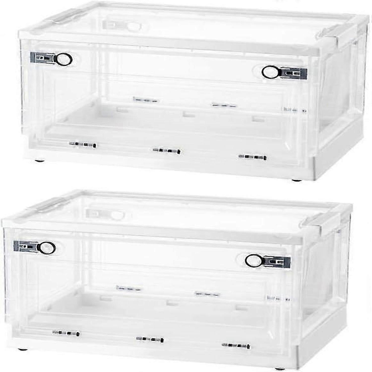 2 Pack Collapsible Storage Box with Lids,Stackable Storage Boxes with Wheels at the Bottom(white)