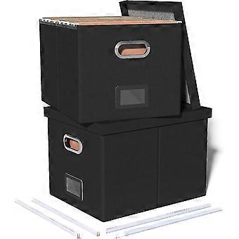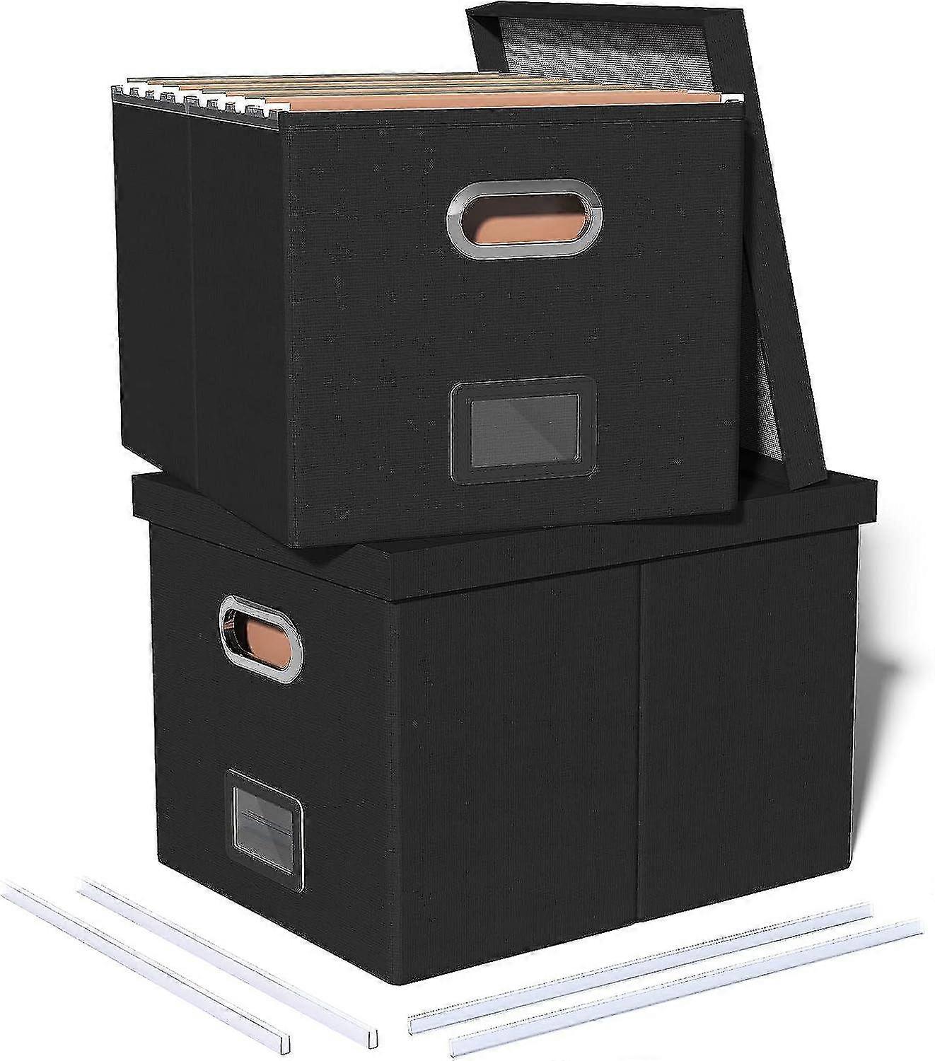 2 Pack File Storage Organizer Box,Filing Box,Portable File Box with Lid,Fit for Letter/Legal File Folder Storage,Black-Box only