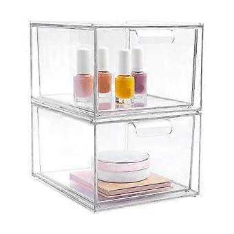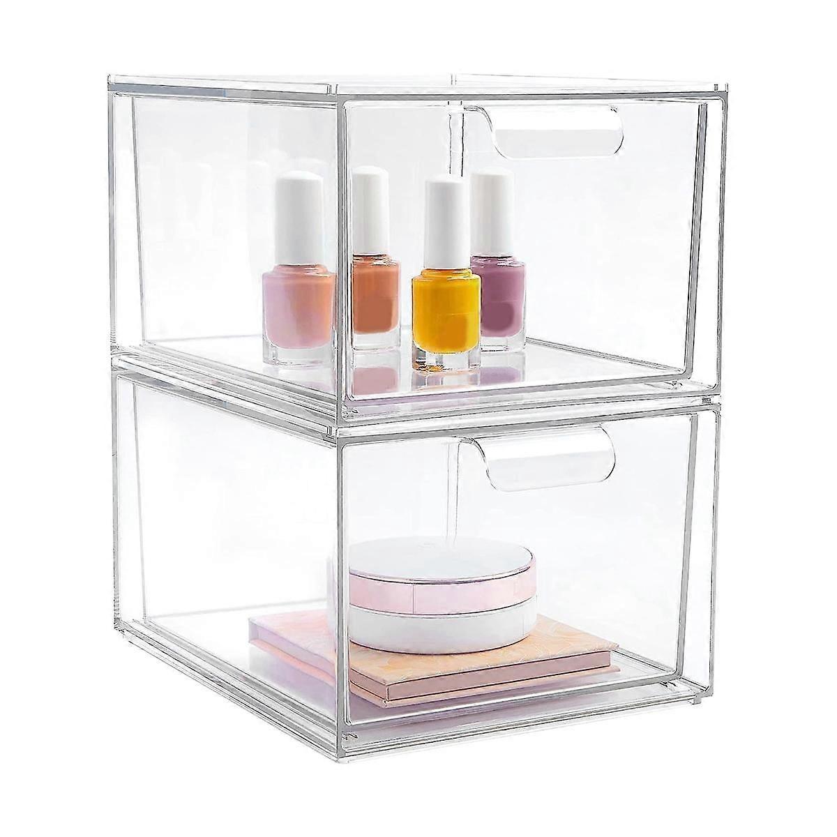 2 Pack Stackable Makeup Organizer Storage Drawers, Acrylic Bathroom Organizer, Clear Plastic Storag