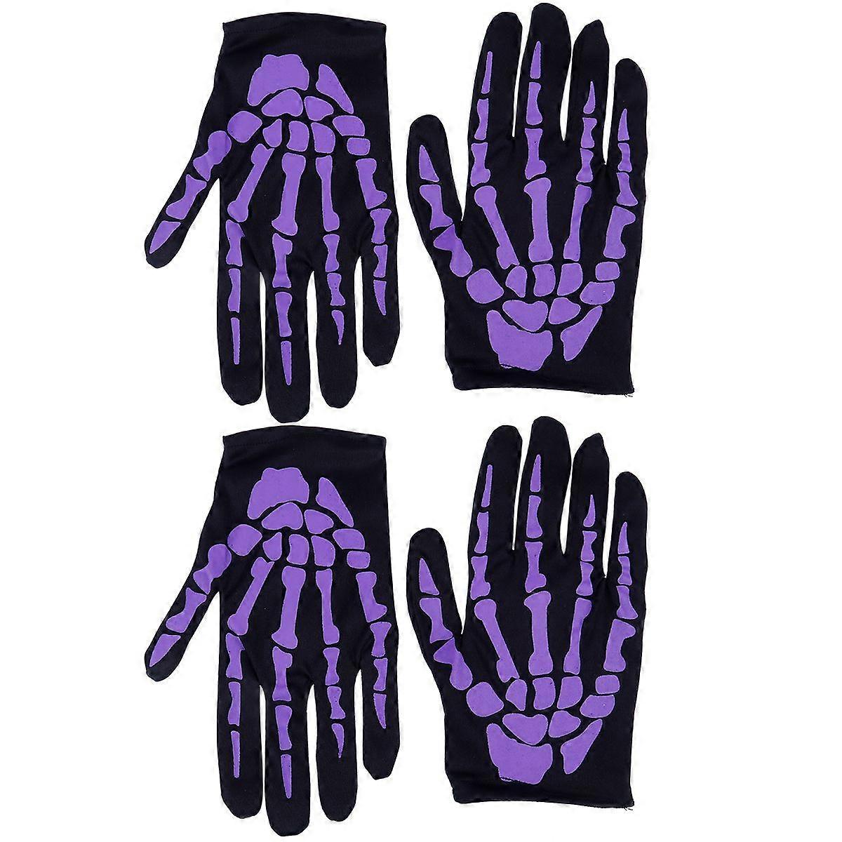 2 Pairs of Halloween Gloves Simulation Lifelike Skull Hand Bone Gloves for Party