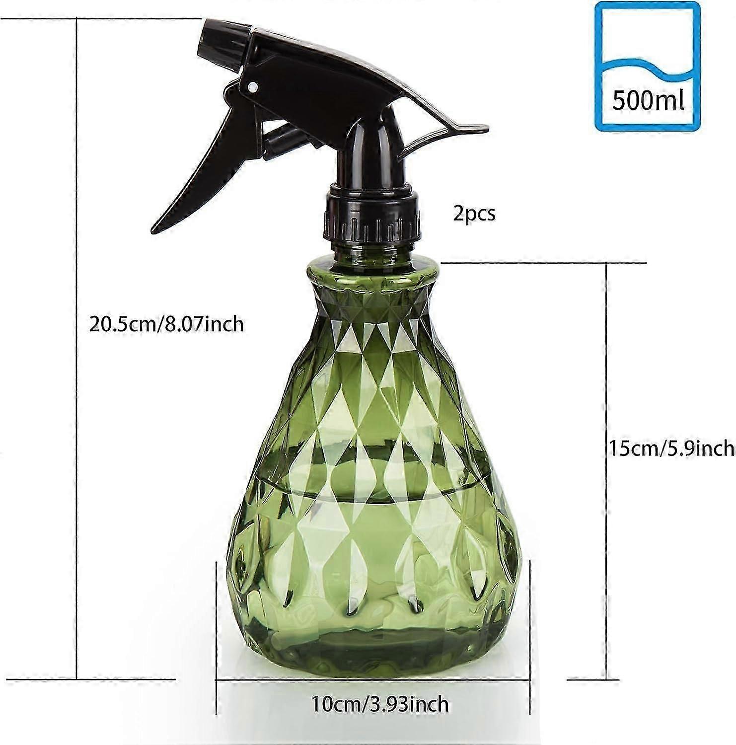 2 Pcs Empty Spray Bottles, 500ml Water Spray Bottles with Adjustable Spray Head, Refillable Trigger Sprayer Bottles(Green)