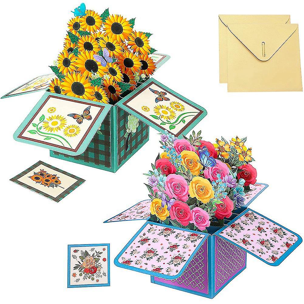 2 Pcs Flower Pop-up For 3d Bouquet Envelope For Ms Day Mom