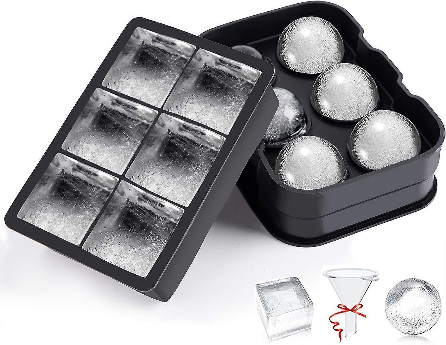 2 Pcs Ice Cube Trays - Silicone Sphere Ice Ball Maker with Lid - Large Square Ice Cube Molds - Reusable and BPA Free