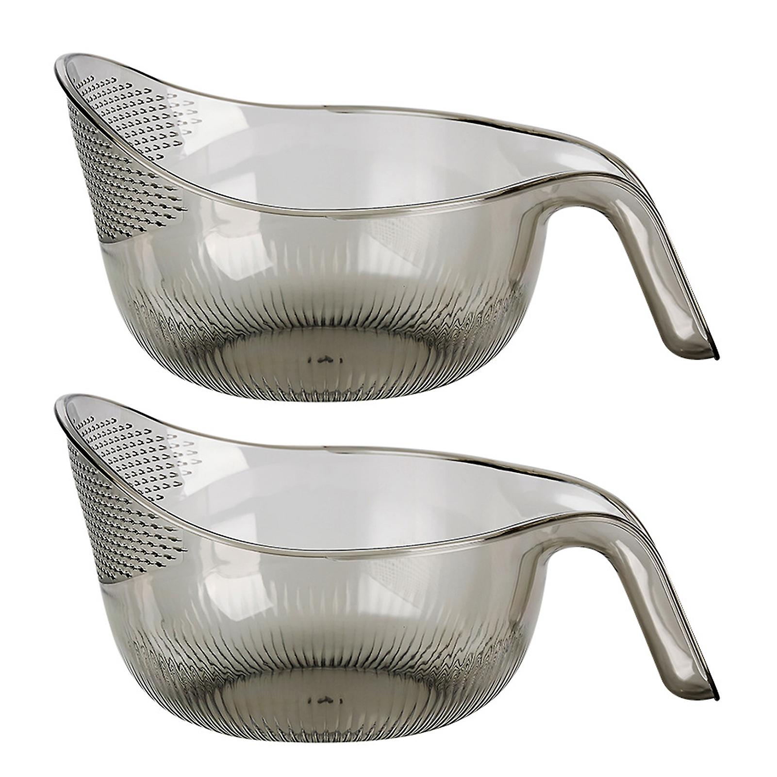 2 Pcs Multi-functional Drain Basket with Handle Thick Stable Large Capacity Hollow Transparent Rice Fruit Vegetable Washing Draining Bowl