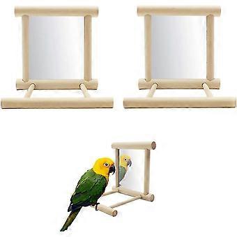 2 Pcs Parrot Bird Mirror,bird Stand Perch With Mirror