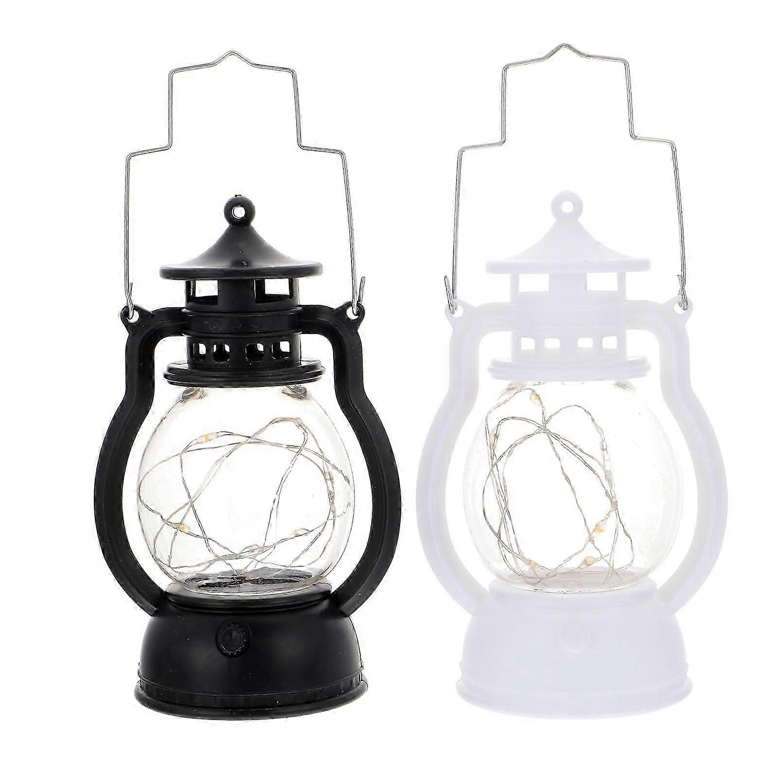 2 Pcs Vintage Lantern Holiday Table Lamp Camping String Light Vintage Garden Lantern Flickering Lantern Kerosene Lamp