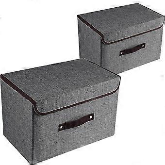 2-piece set Large Storage Boxes with Lids and Handles, Collapsible Linen Storage Bins Organizer Containers Baskets Cube with Removable Divider for Hom