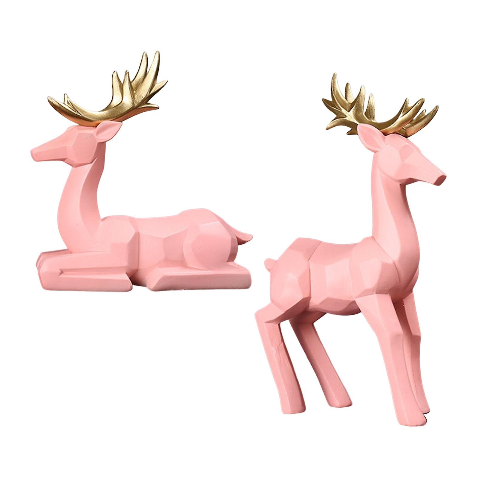 2 Pieces Deer Statue Tabletop Animal Ornament Craft For Nightstands Hallway Blue
