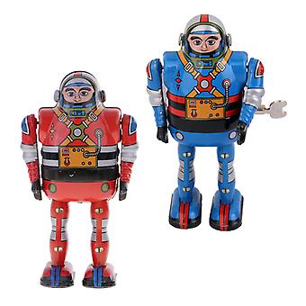2 Pieces Retro Wind Up Clockwork Mechanical Walking Tin Astronaut Robot