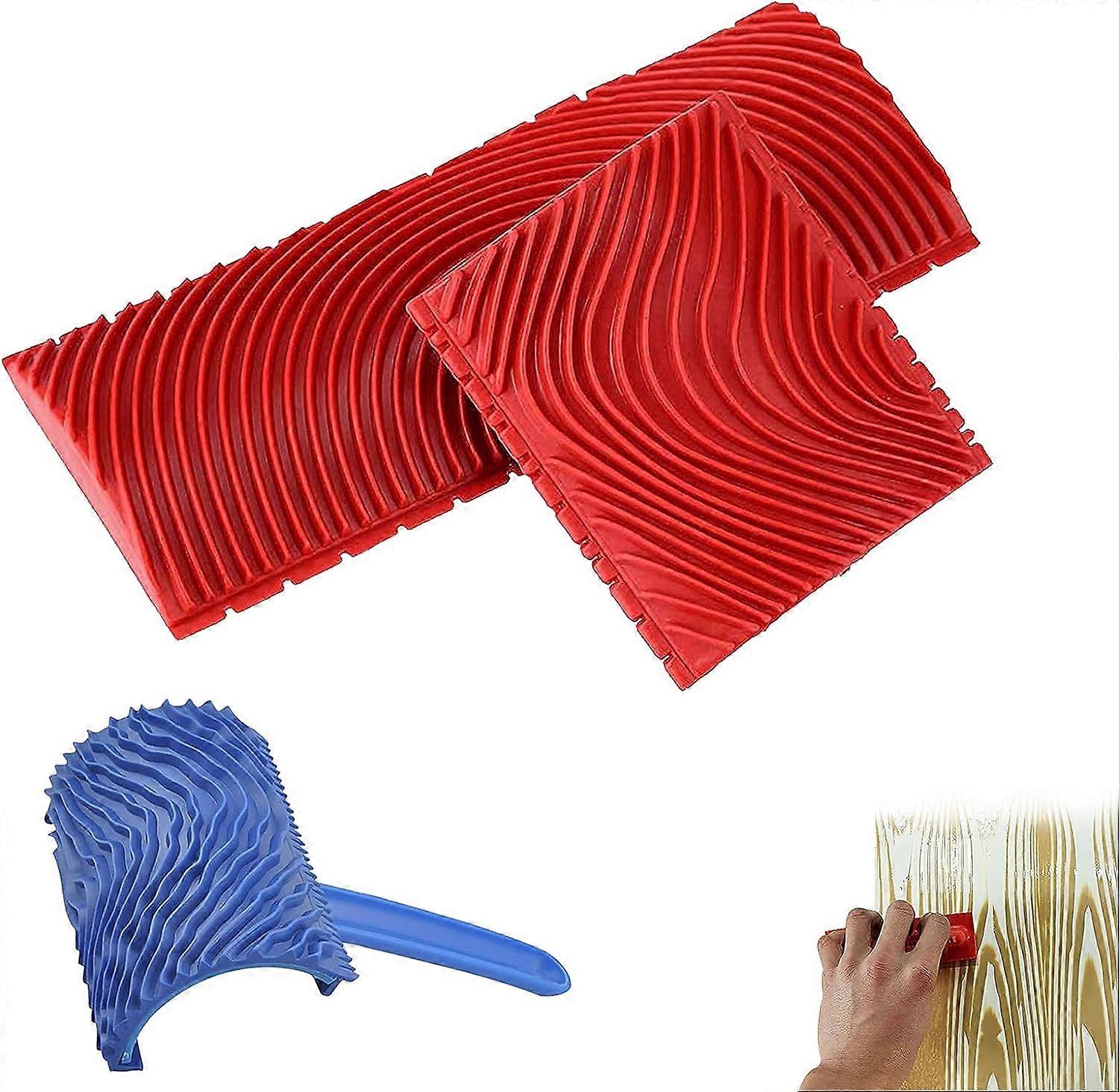2 Pieces Wood Grain Tool And 1 Piece Wood Grain Tool Paint Roller With Handle For Diy