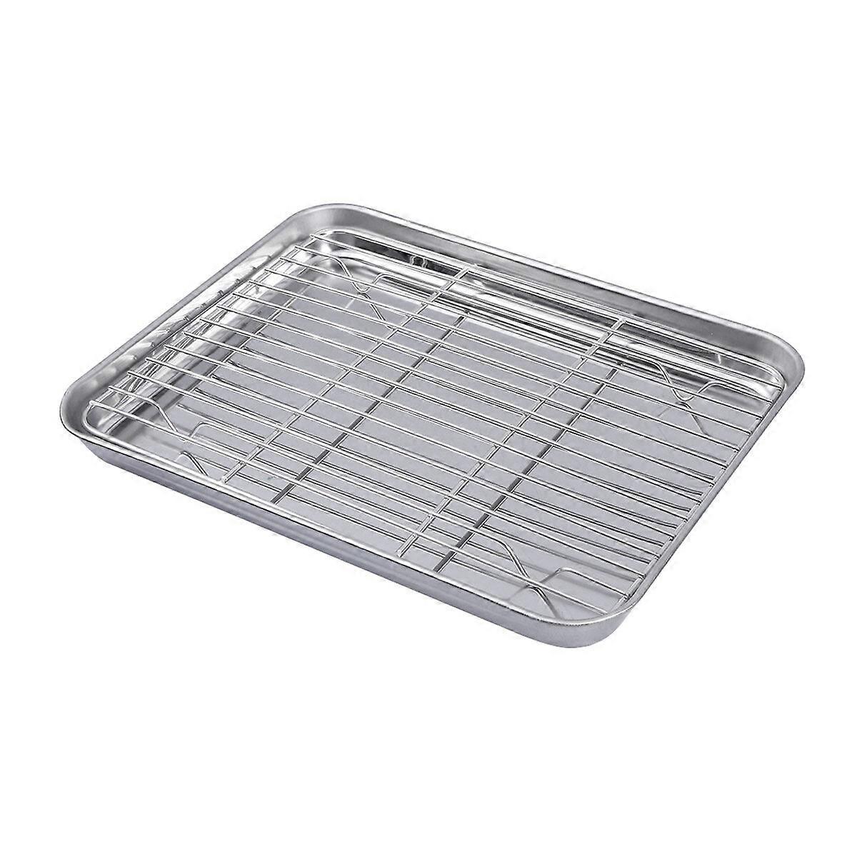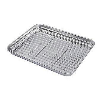 2 Pieces/Set Rectangular Baking Tray Stainless Steel Baking Pan Sheet with Removable Cooling Rack - 26x20x2.5cm