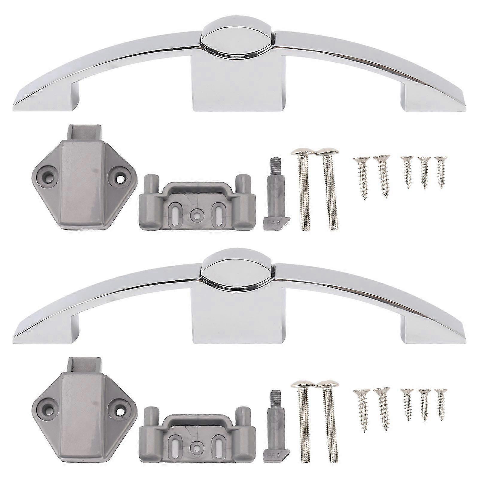 2 Set Push Button Latch Cabinet Lock Cupboard Knob Latch Lock With Handle For RV Motorhome Boat 128mm Hole Spacing (chrome)