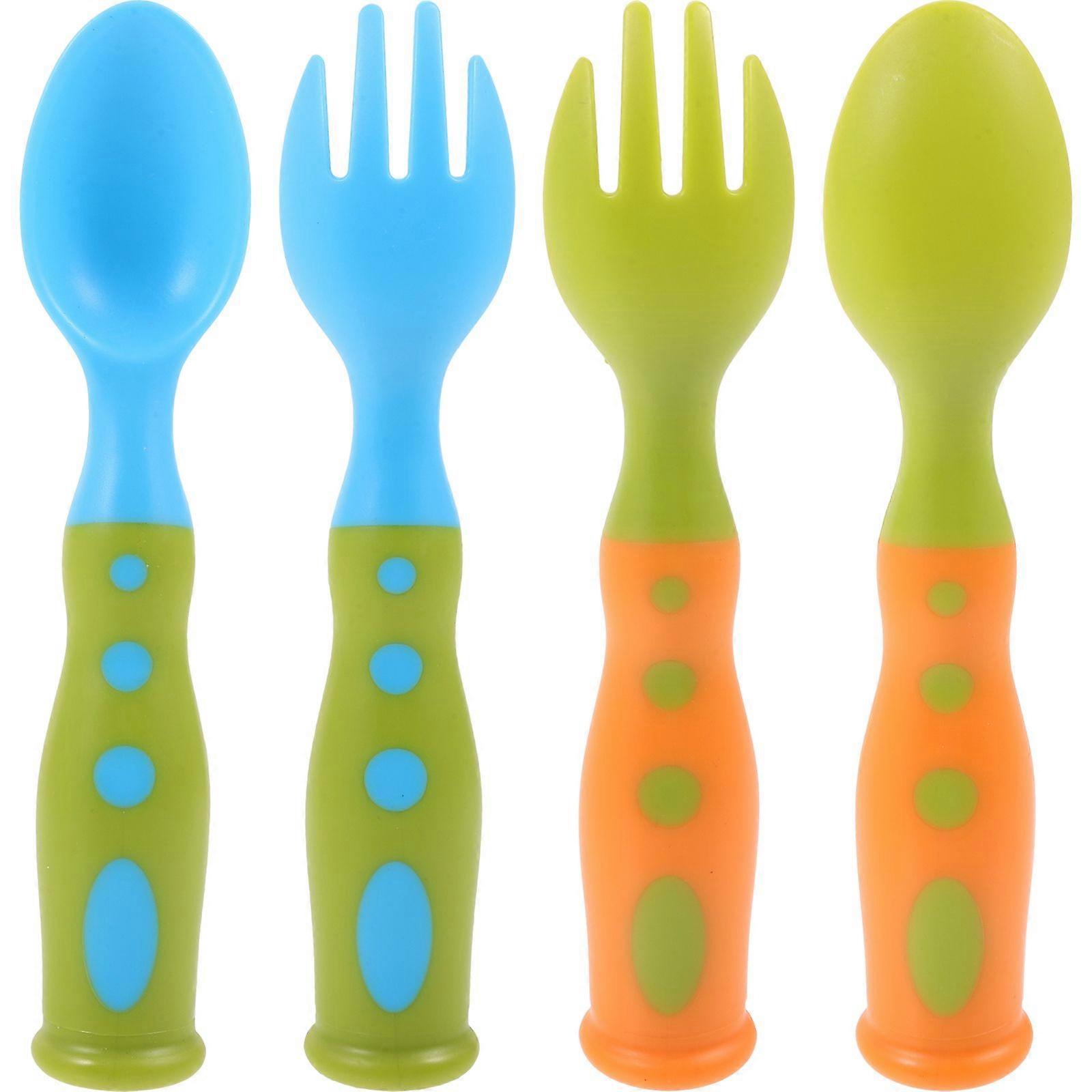 2 Sets Baby Utensils Baby Self Feeding Fork Toddler Training Fork Baby Training Spoon with Storage Box