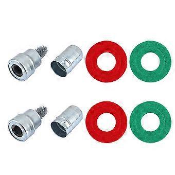 Description This item is two sets of battery terminal cleaning brush kits. Comes with 4 pieces battery washers and 2pcs battery terminal cleaning brush. The battery washers can prevent corrosion around the battery terminals, prolong battery life. Features - Color:Assorted. - Material:Steel wire, fiber. - Size: About8.00X3.50X3.50cm/ 3.14X1.38X1.38inch. - It is made with exquisite craftsmanship and can provide you with a good experience. -Fine workmanship and safe use, you can use it with confidence. -This battery post terminal cleaner gives you the power to clean post and terminals inside and out. -The heavy duty steel wire bristles resist flattening while cleaning out dirt and corrosion with ease. -It features a contoured grip for comfort and control during operation, making this brush a great tool for battery maintenance project.Package list: 2 x cleaning brushes 2 Pairs x gaskets
