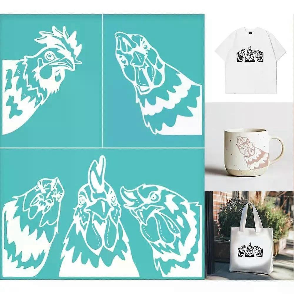 2 Sheets Chicken Pattern Silkscreen Stencil Farm Animal Painting Stencils Templates Reusable Self-Adhesive Silk Screen Printing