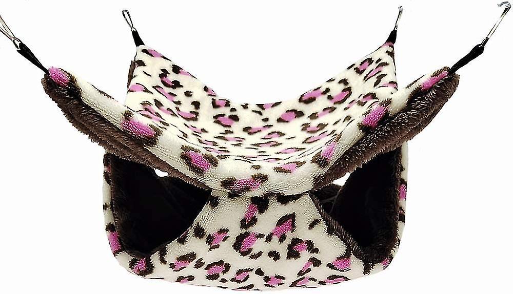 2 Tier Hamster Leopard Hammock For Small Animals, Plush Hanging Bed Bag And Warm Sleeping Bag Access