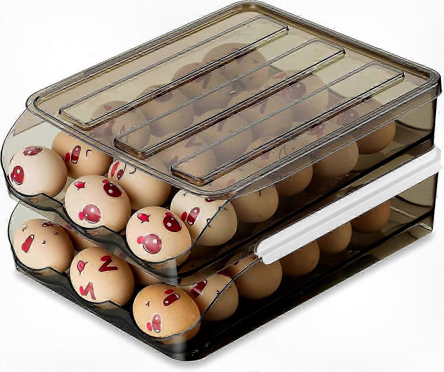 2-Tier Stackable Egg Storage Container with Lid, Automatic Roller Fridge Organizer for Refrigerator