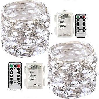 2 X 10m Battery Operated Led String Lights 100 Leds Timer Function With Remote Control Ip65 For Christmas Wedding Party Home Garden (white)