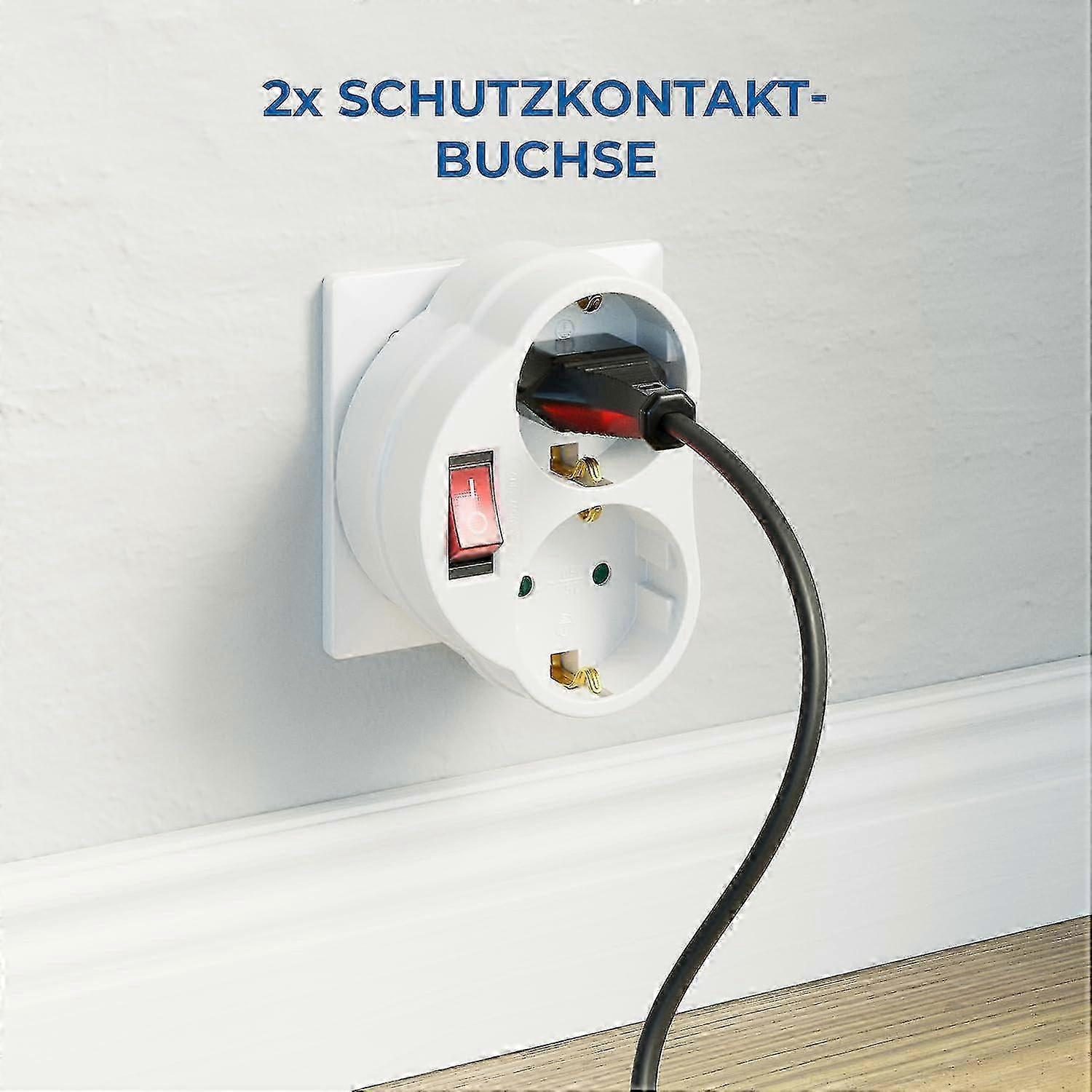 2 X Socket Adapters Indoor Protective Contact Adapter Illuminated On/off Switch Power Adapter Power Plug Adapter Plug 2 X Earthing Contact Socket 16 A