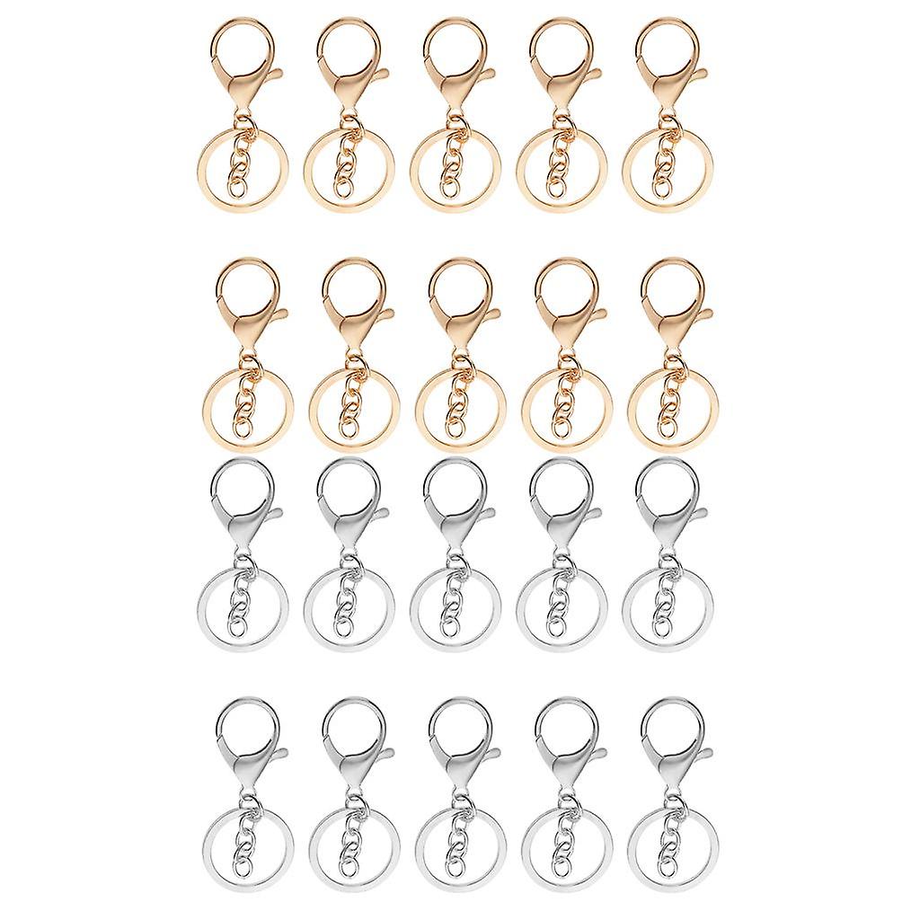 20 Pieces Snap Lobster Clasps Clips Hook with Chain Keychain Silver Gold