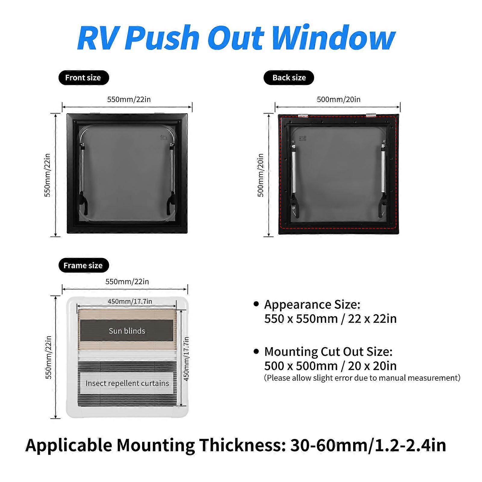 20 X 20in RV Push Out Window Insect Proof UV Protection 75 Deg Opening for Caravan Camper Trailer Motorhome