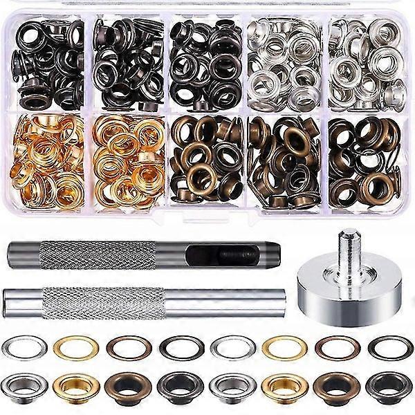 200 Brass Eyelets with Punch Tool Set for Leather, Fabric, and Crafting - 4 Colors, Storage Box Included