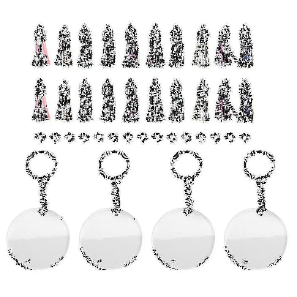 DIY Keychains Making Kits: Acrylic keychain blanks set comes with 50 pieces of clear round acrylic blanks, 50 pieces of keychain tassels, 50 pieces of split key chain rings and 50 pieces of jump rings. Great for vinyl projects, and keychains making.Higher Quality Blank Keychains: keychain blanks are made of acrylic material that are clear and lightweight, you can work with without worrying about any kind of crack.Protective Film: Note that all acrylic discs are covered with protective film on both sides that should be peeled off when you are to use the blank. This protective layer keeps the acrylic blank from being scratched or dirty. Edges & Transparent Circle Discs: These blank keychains for vinyl are cut and the edges are , providing you with accurate sizes and edges. The and clear blanks will make your custom key chain project look great.Convenient to Use: You can draw, , or paste your own favorite sticker on the acrylic circle keychain blanks, the acrylic blanks keychain bulk are suitable for making key chains, zipper pulls, backpack bag tags, ornaments, gift tags, pendant decoration, and many other craft projects.Colour: as shownMaterial: acrylic + metalPackage Contents:50 * (25 colors*2)50 * Chain Key Ring50 * Round Acrylic Blanks50 * Hanging RingOnly the above package content, other products are not included.Note: Light and different displays may cause the color of the item in the a little different from the real thing. The measurement allowed error is +/- 1-3cm.