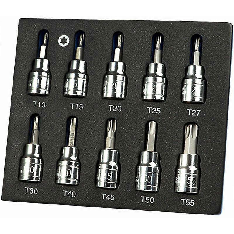 2025 Latest Model 10PC 3/8" DR. TORX BIT SOCKET SET Cylinder Batch Pressing Sleeve 7086(10PC Sleeve Pressing