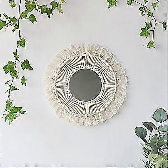2025 New Macrame Wall Mirror Round Mirror Boho Macrame Fringe Mirror with Pendant