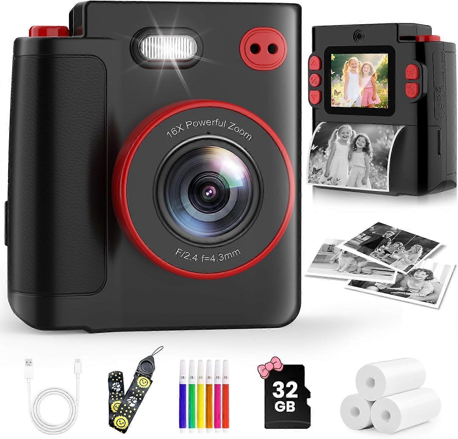 2025 Newest Kids Instant Print Camera - Classic Black Digital Camera for 3-12
