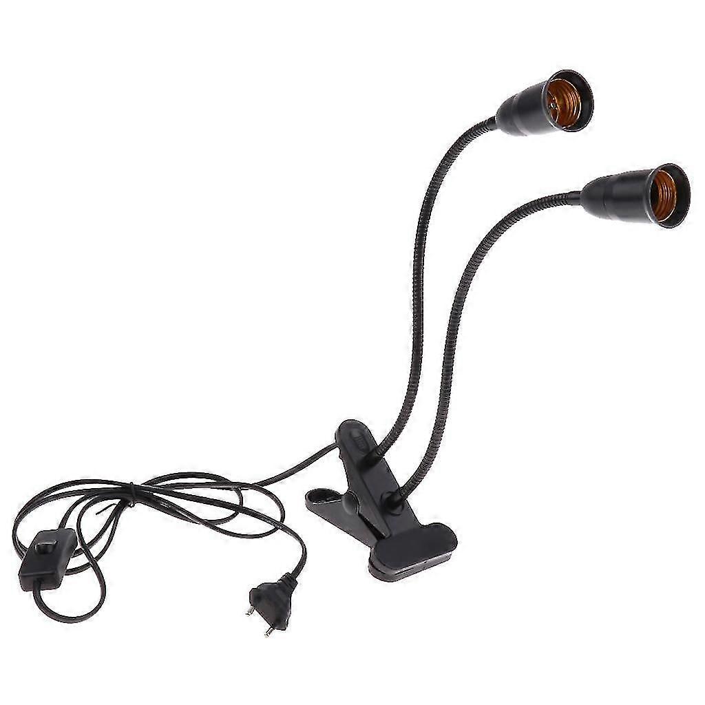 2026 NEW EU Plug E27 2-head Clip on Reading Light Base Desk Reading Lamp Socket Black