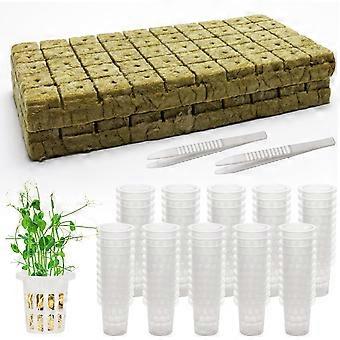 202Pcs Rockwool Planting Cubes Set 1 Inch, 100P Rockwool Starter Plugs with 100P 1.5 in Hydroponics Net Cup 2 ZMYX SZRH