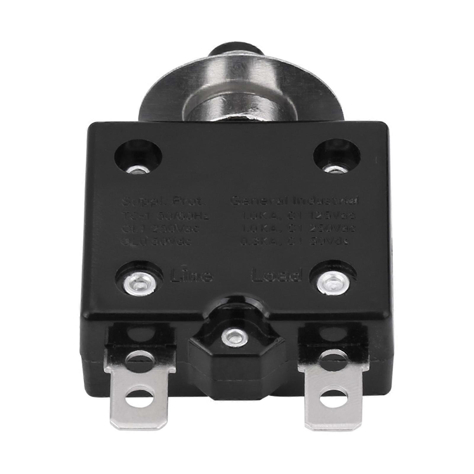 Features: When the load exceeds the rated current, this switch reset button will automatically cut off the circuit, and thus play a role in protecting the line. This switch can be reset after a disconnect over a period of time, then you can press the reset switch to use it again. Compact design enables high density circuit protection configuration. Made of durable plastic, high quality and long service life. It is widely used in automotive, industry and ocean industry. Specification: Condition: 100% Brand New Rated Voltage: DC 50V, AC 125-250V, 50/60Hz Current: 5A/ 8A / 10A / 15A / 18A / 20A / 30A (optional) Material: Plastic, Metal Color: Black Size: Show as Picture Package Weight: Approx.26g Package List: 1 * Overload Protector