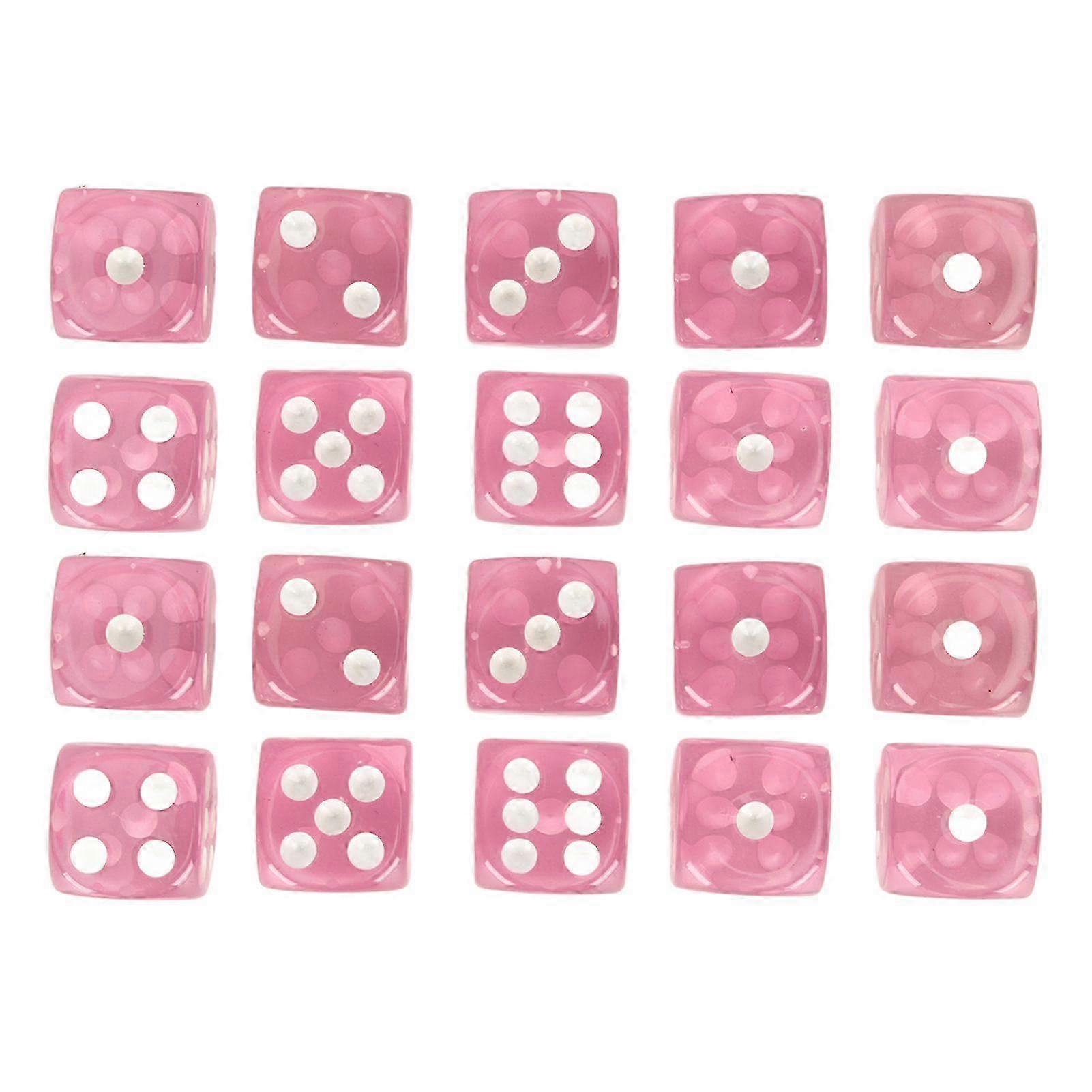 20pcs Dice Set 6 Sided Transparent Dices Rounded Corner Dice for Board Games and Teaching Math Pink with White Spots