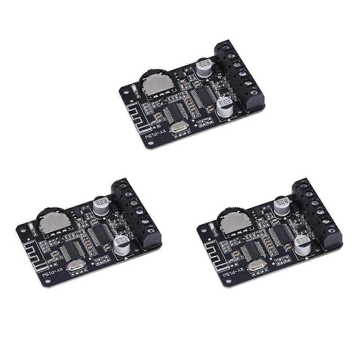 Use the power amplifier board as far as possible away from the signal (router) When connected to a 4 ohm speaker, the power supply does not exceed 12V, when connected to an 8M speaker, the power supply does not exceed 24V4, and the supply current is recommended to be more than 2A. The speaker wire should not be too long, that it is suitable within 1 meter Power supply: DC 8V ~ 24V, more than 2A; matching speakers: 4-8 ohm / 30-150W; input voltage must be lower than 26V, otherwise the Bluetooth amplifier board be damaged. If you need a more powerful audio amplifier board, you can buy other audio amplifier boards in our store. Adjustable volume: turn the adjustment button to increase the volume, turn to the left to decrease the volume; the button to play / stop audio; Safety protection: anti-reverse protection, short circuit protection, over temperature protection (note: when the output power exceeds 20W x 2, a radiator is required); Bluetooth: version 5.0; effective transmission distance: 10-15 meters / 32.8-49.2 feet (barrier-free), when the power is on and the connection is successful, a short and clear prompt sound; Mini stable: suitable for every installation situation; better audio performance, very suitable for your home or car system. 1. Parameters: 1. Product name: XY-P15W stereo Bluetooth power amplifier module 2. Model: XY-P15W 3. Channel: dual channel 4. Output power 6.1- Output power 16W x 2 12V 4ohm-12V 4ohm-Output power 8ohm-12V, output power 16mhm colour: black Material: PCB size: 50 x 33mm Package Contents: 3 x XY-P15W Bluetooth power amplifier board Only the above package content, other products are not included. Note: Light reflection and different displays may cause the color of the item in the picture a little different from the real thing. The measurement allowed error is +/- 1-3cm.