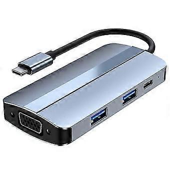 2106 Type-C Docking Station Portable USB Hub Adapter Multi-Port 7-in-1 USB-C to HD 4K / 30Hz, PD 100W, VGA 1080P, USB3.0, USB2.0