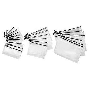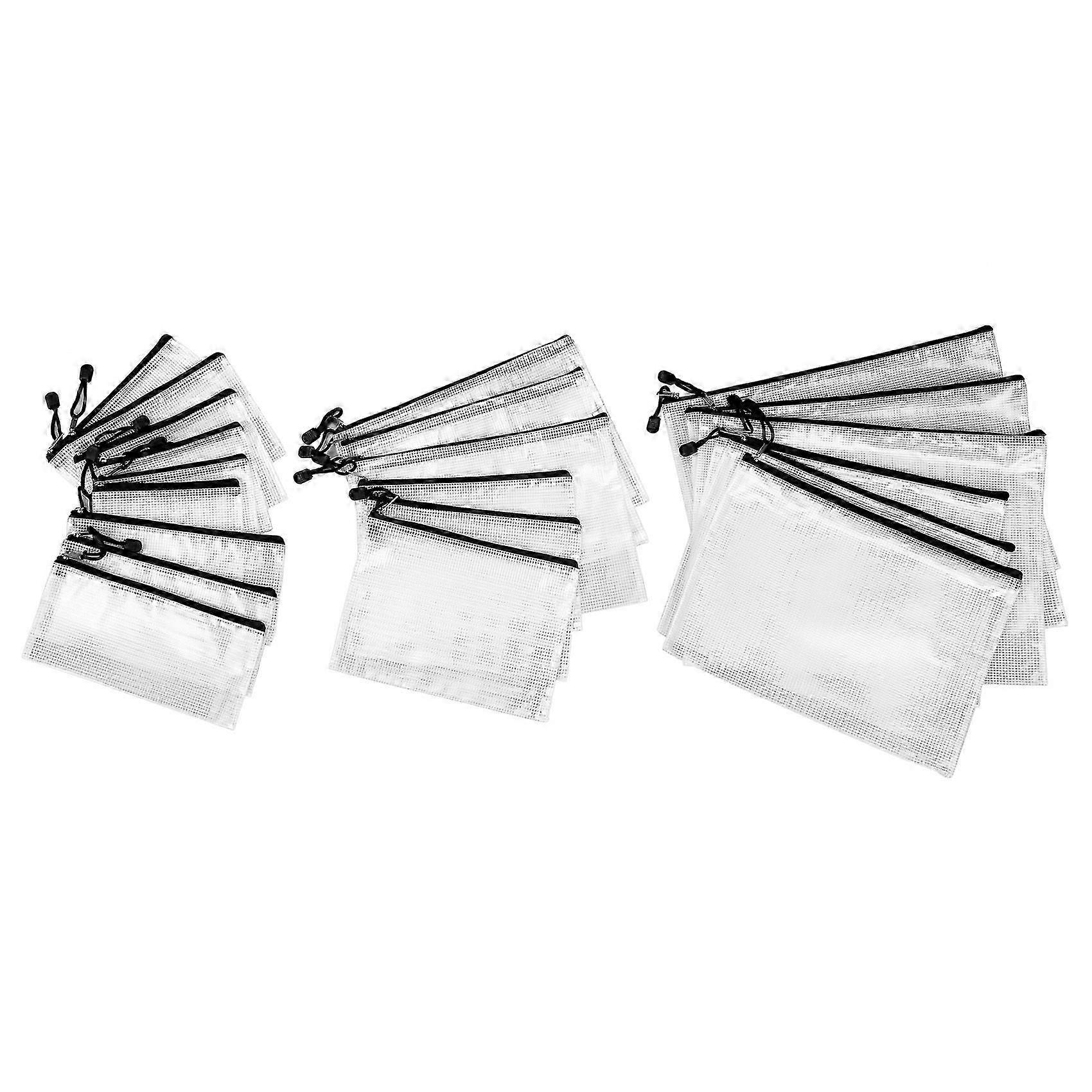 PACKAGE CONTAINS - Multisize Packing plastic zipper pouch. It can help you organize your miscellaneous items to meet your and work. WATERPROOF ZIPPER POUCH - zipper pouch are made of Thickened mesh material, waterproof, moisture resistant; metal zipper, strong and durable. It can be used as a lifting ring to hang the storage pouch . GREAT DESIGNED - zip pouch is moderate transparency, prevents to reveal your privacy, you still can identify the stuff in the file bags.Available in 7 different sizes zipper pouches,and fit most item Storage. WIDESPREAD USE FOR STORAGE - This clear zippered pouch is PERFECT for storing important , devices, smaller books, and other belongs. colour:White + black Material:PVC Package Contents: 3 x B4 (39CM x 28CM) 3 x A4 (34CM x 24CM) 3 x B5 (29CM x 21CM) 3 x A5 (23.5CM x 17CM) 3 x bills (10.5CM x 23.5CM) 3 x B6 (13.5CM x 19.5CM) 3 x A6 (12CM x 16CM) Only the above package content, other products are not included. Note: Light reflection and different displays may cause the color of the item in the picture a little different from the real thing. The measurement allowed error is +/- 1-3cm.