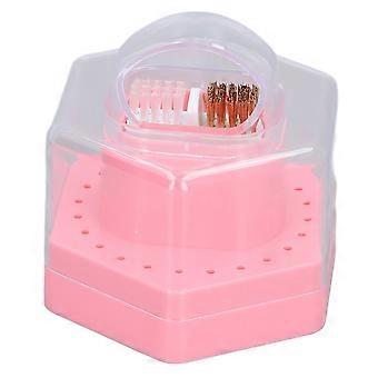 24 Holes 2 in 1 Drill Bits Stand Display Storage Box Nail Drill Bits Cleaning Brush Case Multifunctional Nail Drill Bits Case for Manicure Roseate