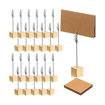 24 Pcs Rustic Wooden Table Number Holders Place Number Holder Stand With Memo Clips and Kraft Cards