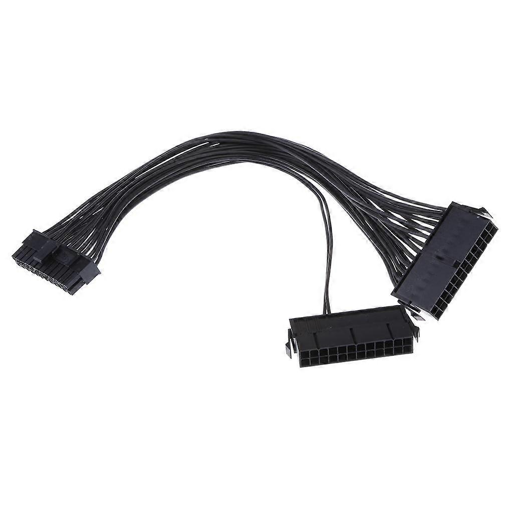 Description: Dual power supply 24-pin to 20 + 4 Pin mains extension cable for and mining rigs and dual power supply games. Allowing the addition of a second power supply unit to the PC, the two power supplies will be equipped with a single motherboard. Use a second power supply to multiple graphics cards, 30cm long to increase contact. Imported black 24PIN (20 + 4) male / 24PIN female * 2, the old motherboard can also be used. Insert the supply 24PIN into the female head and plug the other head to the motherboard. The sub power supply is plugged into another 24PIN female head to switch the power supply at the same time. Package Includes: 1x 24 Pin Mining Cable Note: Note: plug the line must be clear when the direction, do not plug or insert offset, to prevent burn equipment, plug the socket and then plug the line, to avoid excessive force will plug the pin cut.