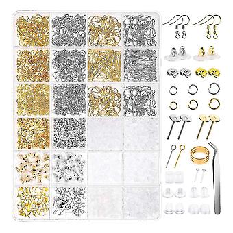 [EARRING KIT] Earring making kit contains tweezers, jump ring opener, 2480 pieces 24 style earring findings: earring backs (plastic, gold and silver), earring posts (gold, silver), earring hooks (gold, silver), eye pins (gold, silver) and open jump rings (gold, silver). You can use it to make or repair your earring and jewelry.[A VARIETY OF STYLES EARRING BACKS AND FINDINGS] This earring making supplies kit includes 12 kinds of earring backings, various sizes, universal earring findings and 6 kinds of jump rings(4mm, 6mm, 8mm) to fit your different needs.[PRACTICAL KIT] Simply use the jump ring is great to connect the earring hook and your charms. Then the rubber earring backs work great to secure your earrings. Tweezers helps you small findings and jump rings opener helps you open and close jump rings easily.[HIGH QUALITY CONTAINER BOX] All the earring making supplies are placing independently in a 24 grids storage container, keep the small parts tidy and organized.[PERFECT FOR JEWELRY MAKING] The open jump rings are suitable for many projects like linking small chain and earrings, making bracelets, repair necklaces, making chain mail and other jewelry related projects.Colour: as shownMaterial: metalPackage Contents:1 * earring making materials kitOnly the above package content, other products are not included.Note: Light and different displays may cause the color of the item in the picture a little different from the real thing. The measurement allowed error is +/- 1-3cm.