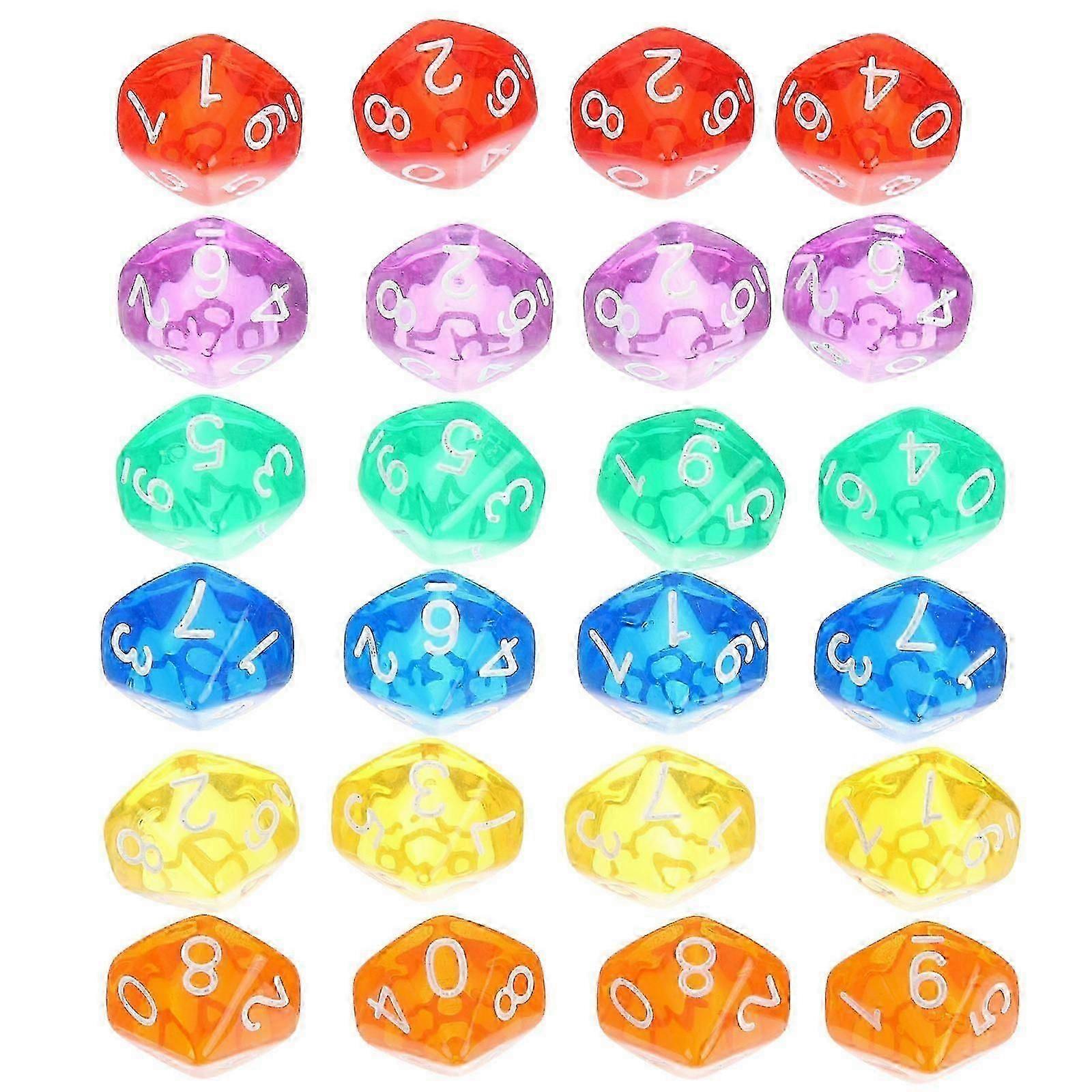 24pcs Acrylic Dice Set Math Toys Dice Table Games Playthings 10 Sided Dice 0-9
