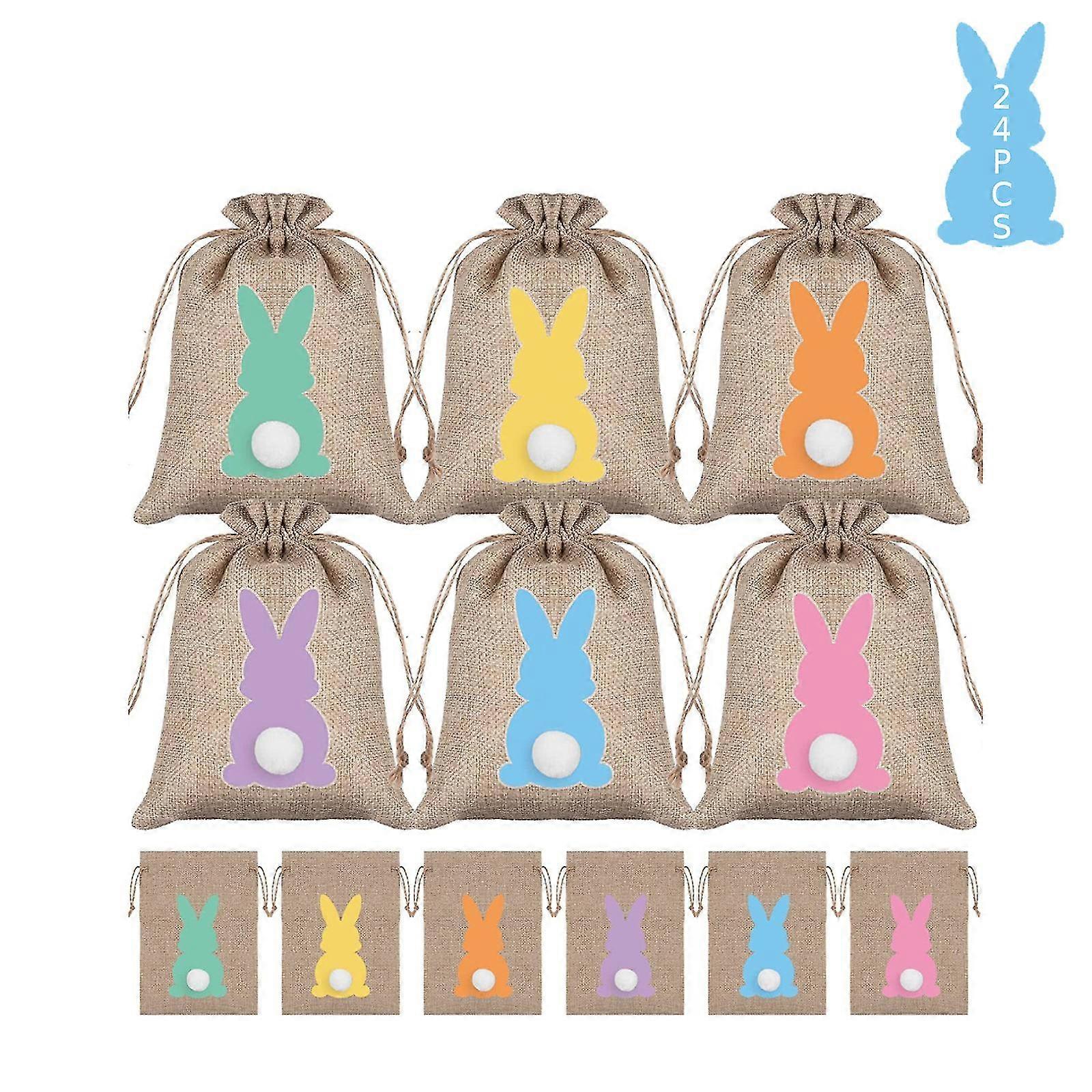 24pcs Easter Bunny Burlap Gift Bags With Drawstring