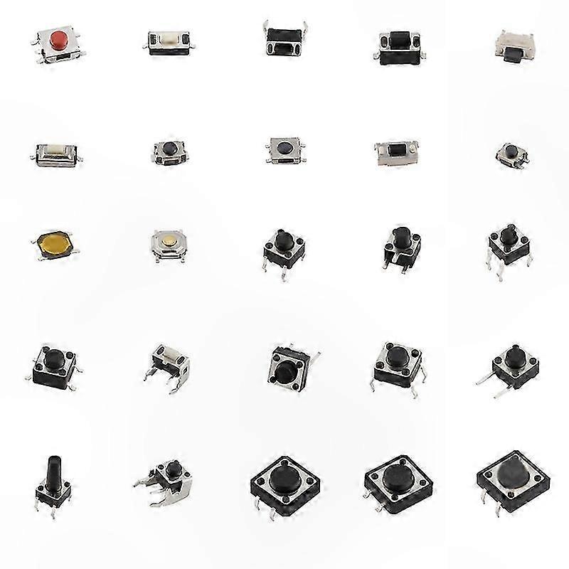 25 Types Tactile Push Button Switch Assortment Kit 125Pcs Momentary Tact Micro for Electronics