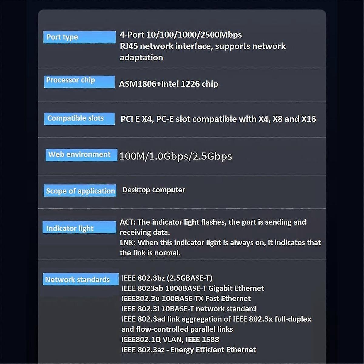 2500mbps Pci-e To Rj45 Network Card I226-v Gigabit Ethernet Rj45 Four Ports 2.5g Pci Express Wlan Adapter For Desktop