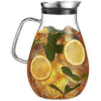2500ml Glass Pitcher With Lid, Beautiful Lightweight Beverage Jug Carafe With Handle Great For Cold Day