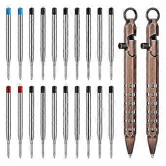 2Pack Bolt Action Pen Set, Hexagonal Solid Brass Pocket Pen with 20 Ballpoint Refills E