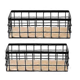 2Pack Metal Storage Basket with Wood Base,Decorative Baskets for Home Storage,Wire Basket for Organizing Small Tableware js